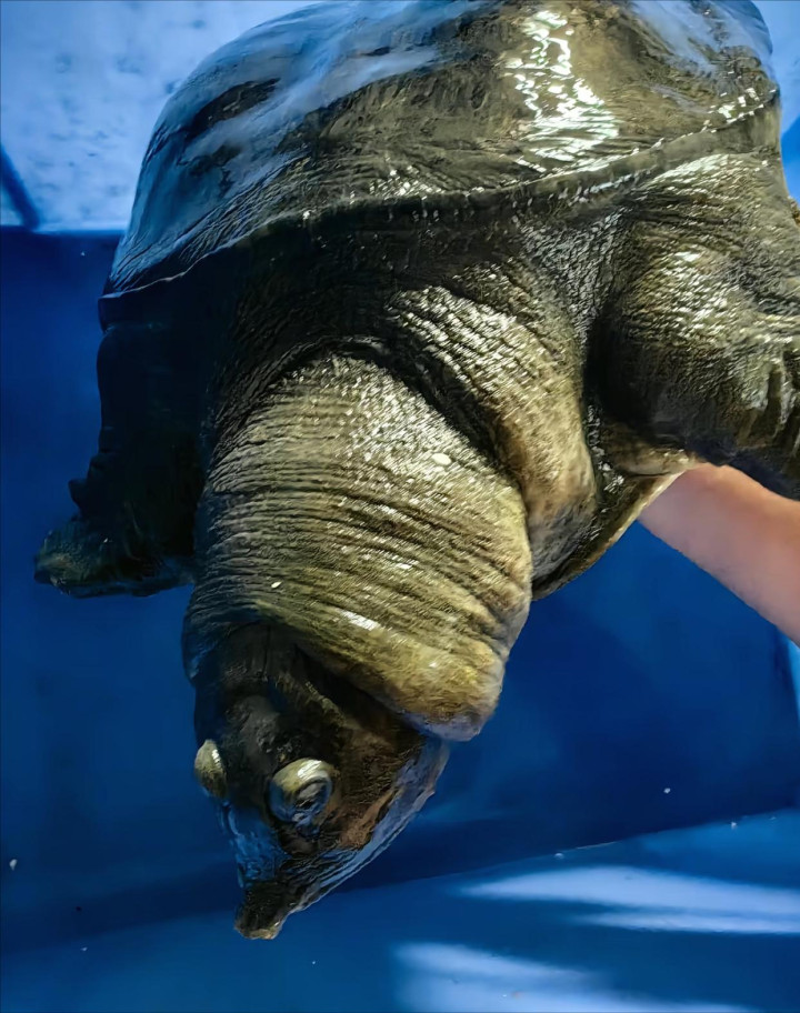 这些说法,齐不夸张。斑鳖,又叫斯氏鳖或黄斑巨鳖。它是全国上最大的淡水鳖,背甲不错长到1.5米长,体重能提升100公斤——比一个成年东谈主齐重。