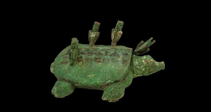 3000年前的商朝,青铜器上就有它的身影!出土的“作册般青铜鼋”造型即是一只高大的鳖,上头刻着铭文,记录商王在洹水射杀了一只巨型鼋。学者认为,这只青铜鼋的原型,很可能即是今天的斑鳖。