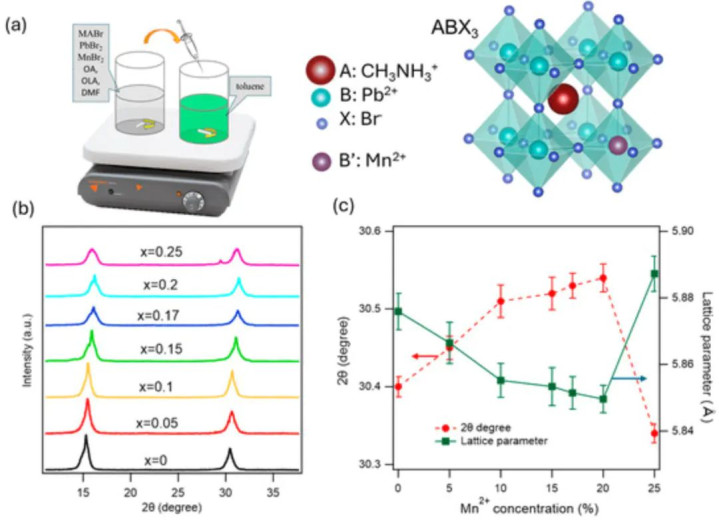 在光电子和光催化应用方面,掺杂雷同效果显赫。举例Tang等向MAPbBr₃钙钛矿纳米晶掺入Mn²⁺可显赫提高材料的光致发光效力和结构持重性。